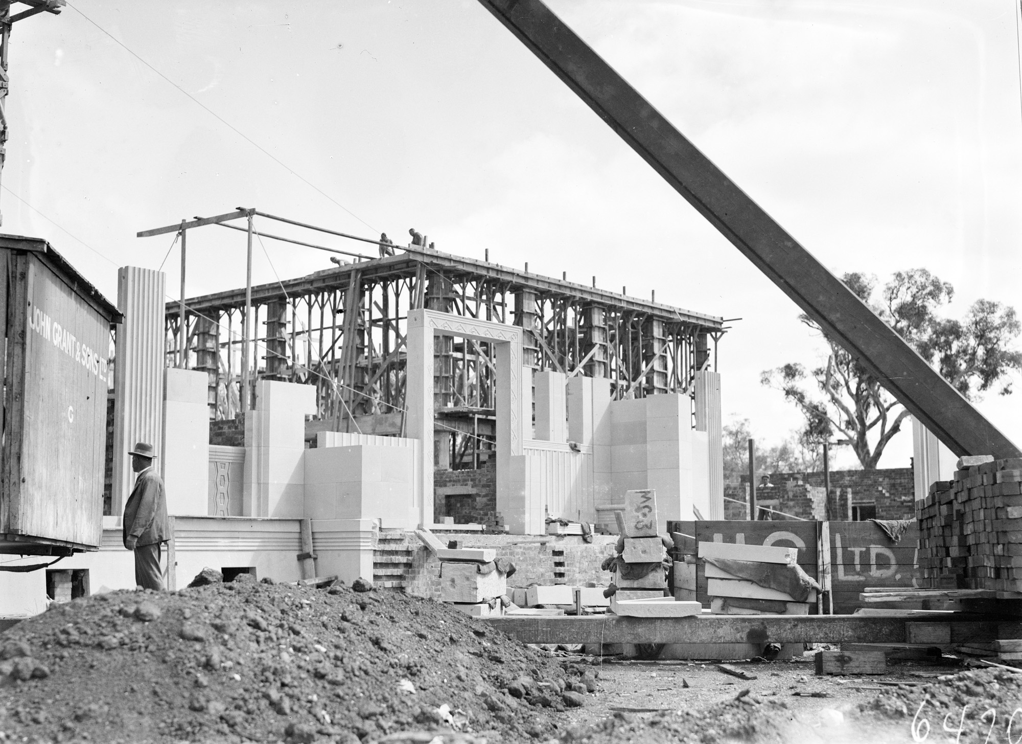 Australian Institute of Anatomy under construction, external facing being fitted. McCoy Circle, Acton.