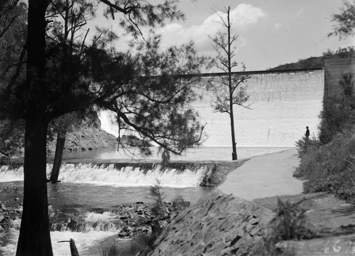 Cotter Dam Wall and stilling pond.