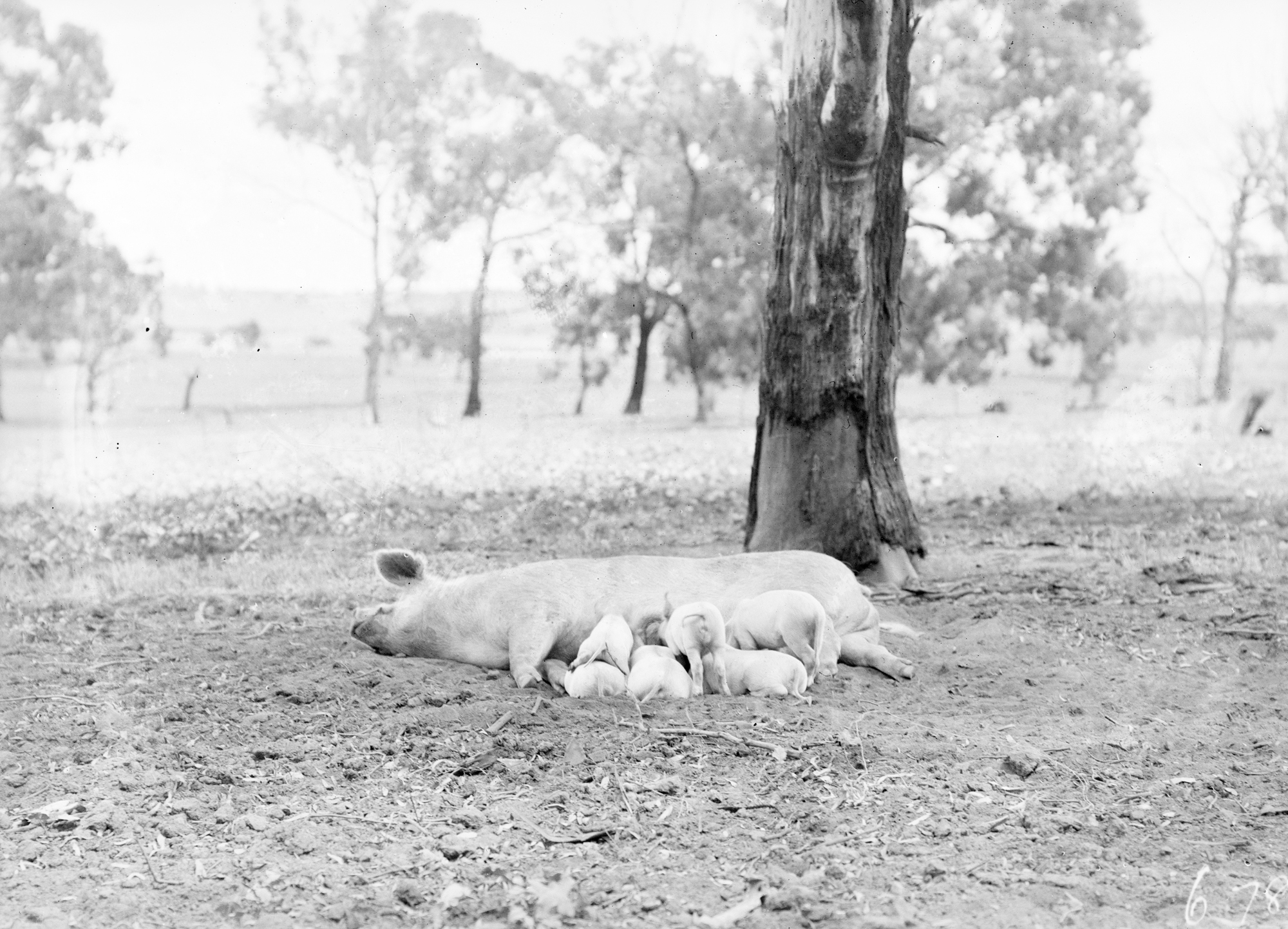 Large white sow and suckling piglets at Government hog farm, off the Federal Highway, Watson.