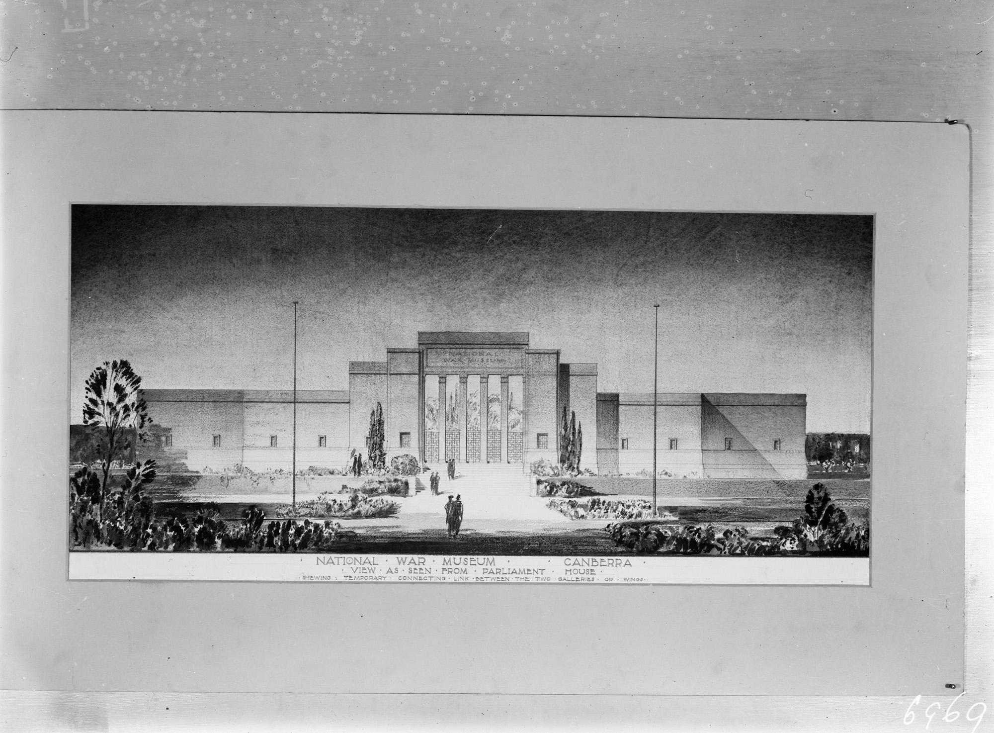 Perspective drawing of a proposed Australian War Memorial (National War Museum).