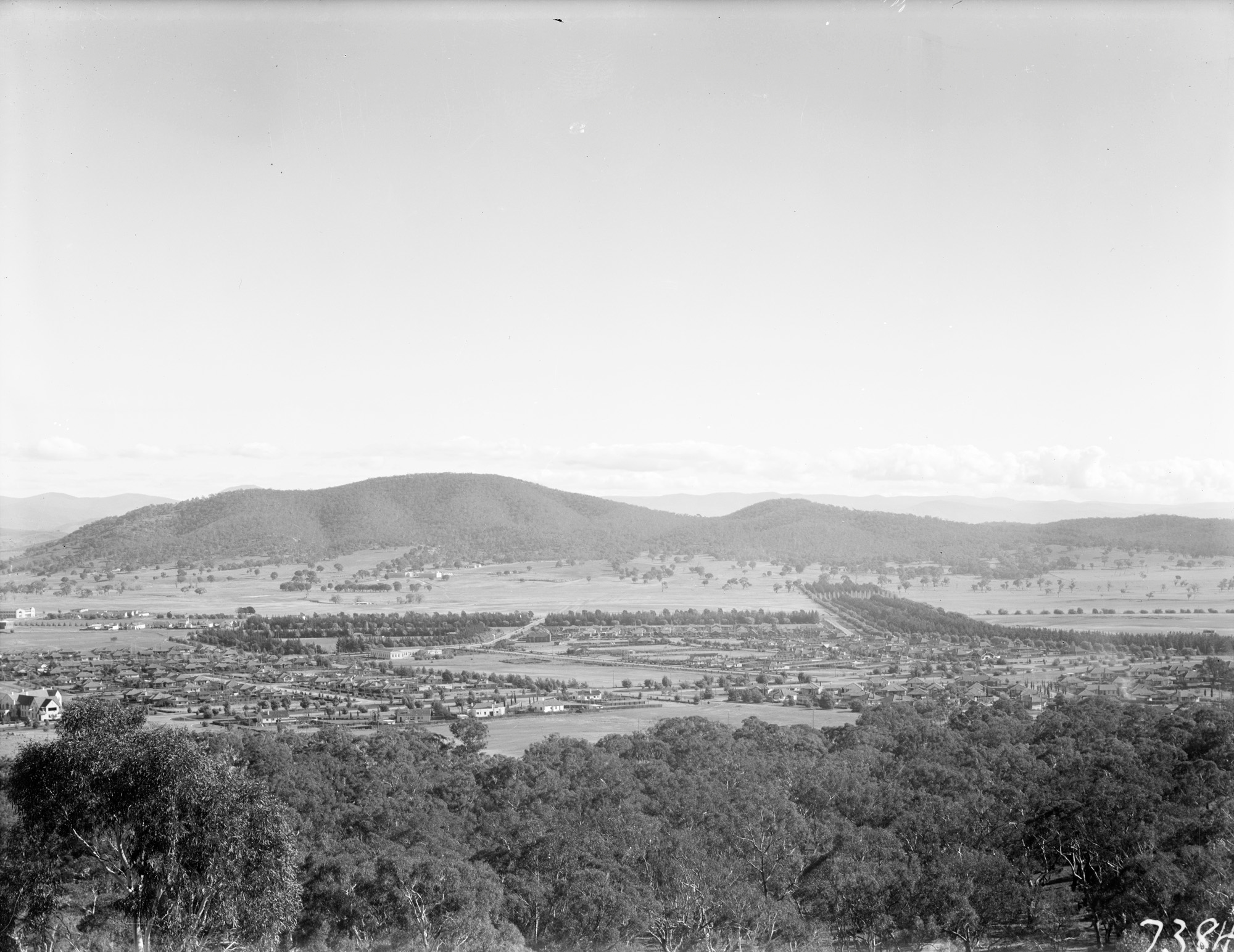 North end of Braddon from from Mt Ainslie. Haig Park on right, Black Mountain on horizon.