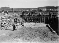 Manuka swimming pool, under construction, pouring concrete for the walls, Manuka Circle, Kingston.