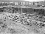 Manuka swimming pool under construction. Walls now complete, formwork being removed. Manuka Circle, Kingston.