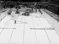 Manuka swimming pool under construction, tiling of the floor, Manuka Circle, Kingston.