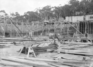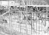 Black Mountain reservoir showing steel reinforcement and concrete form work.