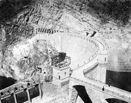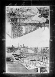Copy of picture of Welland Ship Canal, flight locks under constructionon Lake Ontario USA.