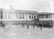 Bagpipe band performing in the grounds of Telopea Park School, New South Wales Crescent, Barton.