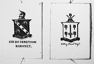Photos of a collection of English Coats of Arms. Sir H C Ibbetson, Baronet and Jeffry Paul, Esq