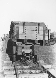 Railway trucks for disposal - side tipping brickworks truck showing the brick carrying area, at Kingston Power Station