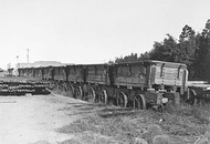 Railway trucks for disposal - row of brickworks trucks at Kingston Power Station