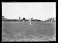 Golf championship finals - two golfers putting on the final green.