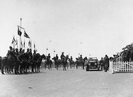 Armistice Day -Arrival of the Governor General, Lord Stonehaven in car with Light Horse escort in front of Parliament House