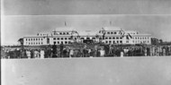 Delegates to a cancer conference in front of the Australian Institute of Anatomy, McCoy Circle, Acton